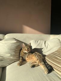 Divano di design, vecchio e molto amato, grande e ancora bellissimo, ma provato dal tempo. Ha tutti i cuscini in piuma d’oca, ma copri cuscini rotti ed alcuni copri cuscini mancanti. Misura 290x95x72. Gatta non inclusa.