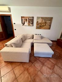 Vendo divano componibile usato in buone condizioni, composto da 4 posti + Chaise Longue + puff coordinato, colore beige (come da foto).