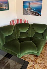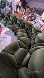 Divano di design anni 70 in ottime condizioni no strappi velluto perfetto di un verde molto bello Sviluppa quasi 3.30 ma è modulabile. Si trova in un magazzino a Roma con facilità di trasporto.