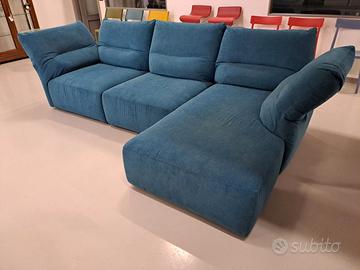 Composizione divano lung. 326 prof. 162 ( penisola) in tessuto sfoderabile blu ontano antimacchia, con schienali e braccioli reclinabili , escluso trasporto