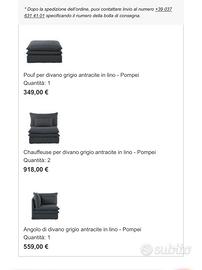 Comprato 4 anni fa da Maison du Monde. Divano componibile composto da moduli larghi 95cm: 1) Angolare 2) Pezzi lunghi 1) pouf Valore divano 1800€