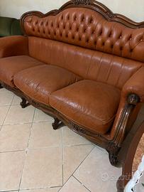 Vendo divano con 2 poltrone,in legno e pelle,usati poche volte vendo per cambio arredo. Spedizione a carico dell'acquirente. Prezzo trattabile
