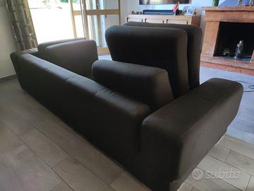Vendo grande divano con chaise longue Chateaux d'Ax. Marrone, completamente sfoderabile (cuscini, braccioli e struttura), tessuto lavabile in lavatrice. La chaise longue può essere montata da entrambi i lati del divano. Uno dei cuscini ha la cerniera rotta, un altro cuscino ha uno strappo in prossimità della cucitura sulla parte posteriore (non a vista). Piccole imperfezioni da utilizzo in altri punti della tappezzeria. Dimensioni: lunghezza 2 metri, larghezza della parte delle sedute normali e dei braccioli 1 metro, larghezza della parte della chaise longue 1,70 metri.