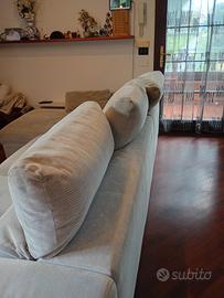 divano in tessuto grigio lunghezza 273 cm, chaise longue 160 cm. con cassettone contenitore, poggiatesta regolabile. sedute estraibili che realizzano un letto ad una piazza e mezzo