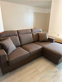 Vendo divano con chaise longue in tessuto marrone, acquistato a gennaio 2024 e in condizioni perfette, estetiche e funzionali. CARATTERISTICHE: • Lunghezza: 216 cm • Tessuto marrone melange di alta qualità • Completamente sfoderabile e lavabile in lavatrice • Cuscini inclusi • Piedini in metallo cromato CONDIZIONI: Il divano non presenta difetti, usure o macchie di alcun genere. È come appena uscito dal negozio. Lo vendo esclusivamente per passaggio a un divano in pelle di categoria superiore, non per necessità. Per info e appuntamento per visionarlo non esitate a contattarmi. Disponibile a trattative serie. Il ritiro è a carico dell'acquirente