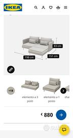 Vendo causa trasloco divano Ikea con chaise-longue modello SODERHAMN colore Viarp beige/marrone. Il divano ha 2 anni di vita, è in ottime condizioni ed il tessuto è completamente sfoderabile e lavabile. Solo ritiro a mano. Per misure o info chiedete oppure basta andare su sito Ikea.