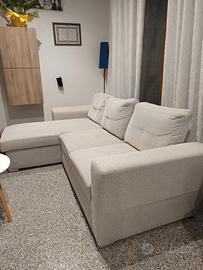 Divano con chaise longue tessuto sabbia chiaro