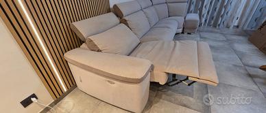 Divano in perfette condizioni dell'azienda Divani living (circuito divani&divani), fabbricato totalmente in Italia. Misura L. 3,80mt con seduta chaise longue (scorrevole allungabile con pulsanti laterali) + pouf estraibile utilizzabile per qualsiasi seduta del divano. Colore beige chiaro e laterali tortora