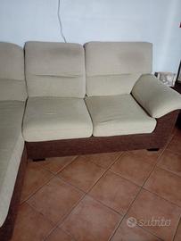 Divano beige e marrone, completamente sfoderabile e lavabile in lavatrice (già fatto varie volte). Due sedute da 60cm , chaslong 150cm. Lunghezza divano 220cm. In ottime condizioni. Cuscini pieni e tenuto bene. Piccolo strappo su fodera inferiore. Vedi foto. Chaslong divisibile. Visibile in loco. No spedizione