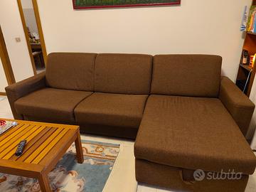 vendo divano-letto a tre sedute con sceslong e contenitore