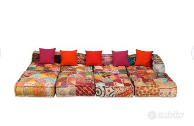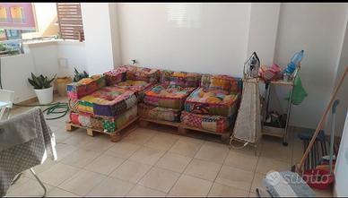 Vendo divano 4 posti con cuscini grandi colorati usato pochissimo.