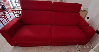 Divano doppio, misure 215x95cm. In ottime condizioni, molto solido. Con doppio meccanismo per reclinare i sedili e alzare il poggiapiedi. Poggiatesta reclinabili. Colore rosso scuro, marchio Divani&Divani.