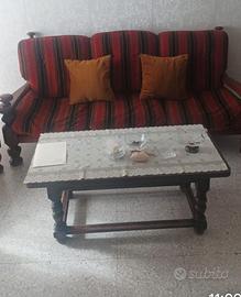 Vendo divano in legno e velluto composto da divano tre posti e due poltrone con tavolino in legno. Euro 150,00. Telefono 393 515 3865