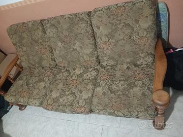 Divano completo con 2 poltrone, in stile arte povera, doghe in legno, braccioli e piedini in legno. Vendo per rinnovo stile arredamento. Prezzo trattabile.