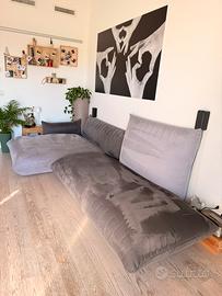 Divano di design in due tonalita di grugio. Forme arrotondate, stule ciscinoni, trapuntature su seduta. Liberamente componibile ti permette di modificare la seduta e lo schienale in base alle proprie esigenze. Piedino nascosti. Larghezza totale 3000mm. Rivestimento lavabile e integro nel suo insieme