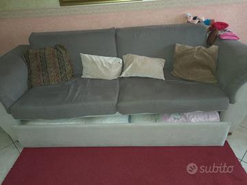vendo divano con letto a cassettone colore grigio chiaro e grigio scuro 2.20lunghezzax90larghezzax60altezza