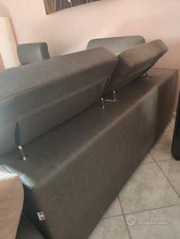 Divano pagato 1,300 € con penisola contenitore a destra acquistato 4 anni fa' in similpelle come da foto....regalo copertura antiscivolo,trasporto e ritiro da un piano rialzato dall acquirente....il divano è nuovo ,sedute durissime 5 testate pieghievoli e regolabili con vano sottostante per appoggiare le gambe,diventa tipo letto matrimoniale, solo che si è spellato senza mai usarlo.....per case al mare,tavernetta e seconde case è ottimo !!! Regalo copertura come in foto....