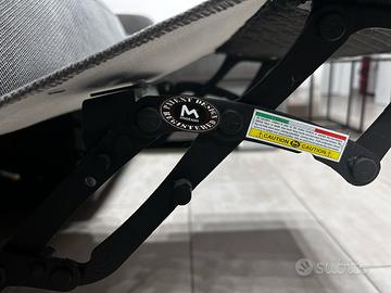 Il tessuto è in ciniglia grigio scuro con trama fine e non presenta macchie. Il meccanismo del relax è manuale e di produttore italiano.