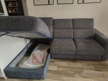 Divano con penisola e box contenitore, Poggia testa regolabili. Tessuto sfoderabile e lavabile. poltrone sofa, 3 anni di vita, in perfette condizioni. Misure 2310 x 1750 H 610 - - - 1000 (con il poggiatesta alzato) Prezzo trattabile Per altre info, chiedete pure senza nessun problema. RITIRO A MANO IN ZONA