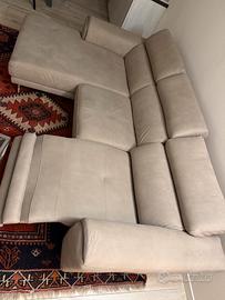 Divano by natuzzi lunghezza 265, penisola profondità 160, con chaine lounge meccanica Senza imperfezioni e senza macchie, tessuto color tortora