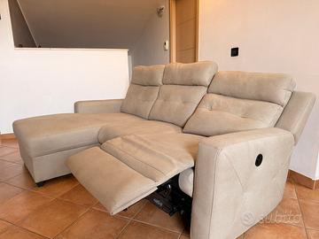 DIVANO ANGOLARE CON PENISOLA SINISTRA - RECLINER ELETTRICO - RIVESTIMENTO FIBRA LIGHT GREY Misure del prodotto 229 x 157 x 103cm (larghezza, profondità, altezza) Trasporto e smontaggio a carico dell’acquirente. Prezzo trattabile