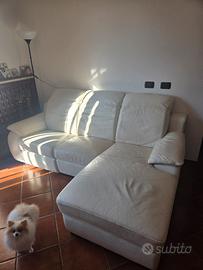 Vendo divano in pelle, o ecopelle, non ho idea. 3 posti, colore BIANCO. Con penisola.