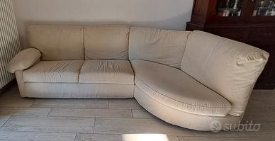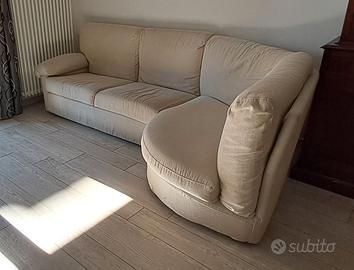 Divano artigianale con penisola completamente sfoderabile in tessuto color beige.