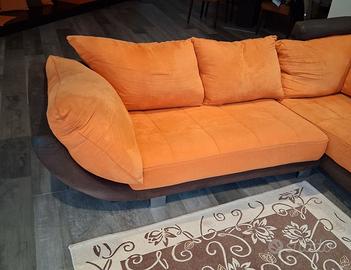 Vendo divano con penisola arancio e marrone