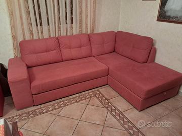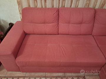 Divano con penisola nuovo senza nessuna macchia o danno alla tappezzeria, con penisola e poggia piedi estraibile. Colore arancio.