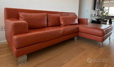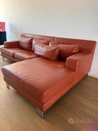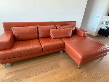 Divano in pelle con penisola (marca Nicoletti) dimensioni 264x94x94 cm con graffi di gatto