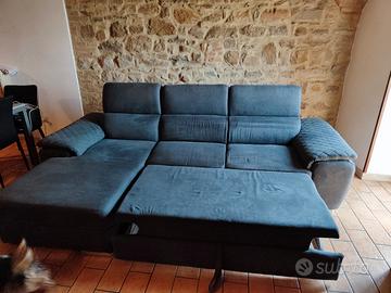 Vendo per causa trasloco divano, con penisola e poggiapiedi, il divano presente alcuni difetti i più importanti sono in foto, inoltre in casa abbiamo un cane, il divano è stato comprato circa due anni fa prezzo trattabile, misure in foto. ritiro a mano. per qualsiasi altra informazione non esitate a contattare