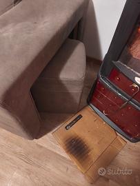 divano con cassetto estraibile più due pouf e pouf grande contenitore in Alcantara colore tortora