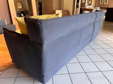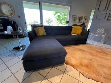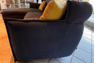 Divano modello Oregon fine serie in tessuto sfoderabile con penisola a sx L. 260 cm. p. 180 cm. 02 cuscini decorativi color senape con tessuto 3d.