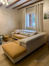 Divano sfoderabile (della linea Poltrone e sofà’) con penisola destra in micro fibra bicolor con poggiatesta reclinabili di misura 280x250x70 (larghezza x lunghezza penisola x altezza) comprensivo dei cuscini e copri seduta della foto più’ due set copriseduta bianchi e verde bosco,