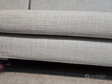 vendo divano completamente sfoderabile con le misure 275/160 rivestito in tappezzeria sartoriale Modo con tessuto pareggiato inserti di vera pelle. Cuscini con piume d'oca, gomma piuma della seduta di media densita', profondita' della seduta75 cm schienale alto 35 cm. Altezza piedini 18 cm. tessuto di altissima qualità colore grigio perla