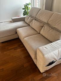 Divano con penidola con seduta estraibile in tessuto antigraffio. Lunghezza 220 cm x 180 penisola e 105 seduta. Ottime condizioni. Da ritirare al domicilio.