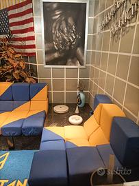 Per chiusura negozio, mettiamo in vendita divano e poltrona con cuscini colorati componibili.