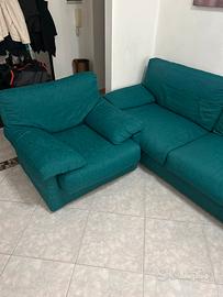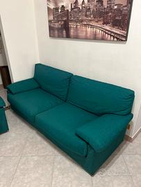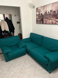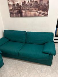 Divano con poltrona in buono stato colore verde. Dimensioni: Divano 210x76 Poltrona 96x76