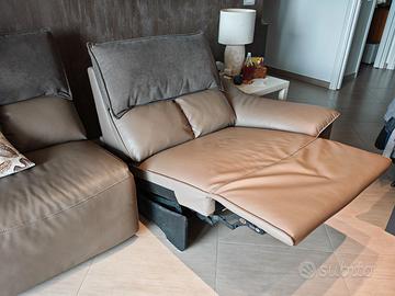 Vendo Divano in pelle e tessuto composto da due poltrone divisibili con 2 movimenti relax elettrici e indipendenti Maison Sofa'.