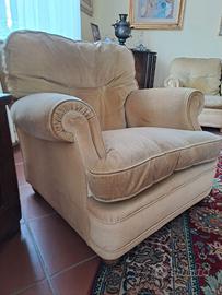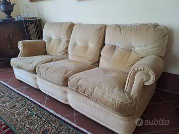 Divano classico in velluto giallo con due poltrone (non rotto solo piccolissime macchioline). Misure divano: 200 x 80 cm prof. 97 cm Misure poltrone: 90 x 80 cm prof. 97 cm