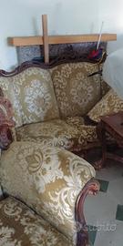 Divano tre posti più due poltrone e due poltroncine in perfetto stato di conservazione sia come imbottitura che come rivestimento.
