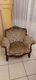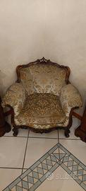 Divano 3 posti in velluto stile barocco con 2 poltrone. Struttura in legno. Lunghezza: 2 metri. Si valutano proposte. Per info 3293434091