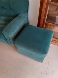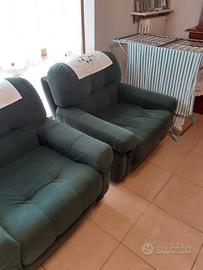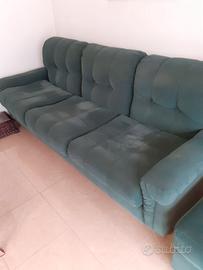 Regalo set completo composto da divano 3 posti + 2 poltrone in tessuto verde. I mobili sono molto spaziosi e imbottiti, ideali per una taverna o una seconda casa.