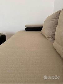 Il divano può essere utilizzato anche come letto, grazie a braccioli e schienali completamente removibili, offrendo massima flessibilità e comfort.