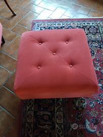 vendita divano con pouf e cuscini come in foto, divano in materiale alcantara rosso molto pregiato con relativo pouf e cuscini compresi ,lunghezza complessiva 2 metri e 10 x 101cm x 75 altezza , pouf 60 x 60 , e 35 cm altezza .
