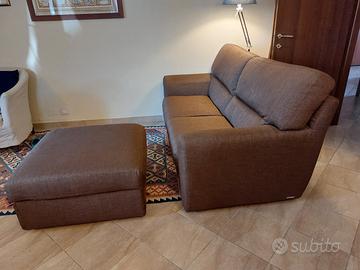 Divano con pouf in tessuto no peeling, completamente sfoderabile e lavabile in lavatrice. Colore marrone scuro. Dimensioni divano 190x90,dimensioni pouf 80x80. Prezzo trattabile.