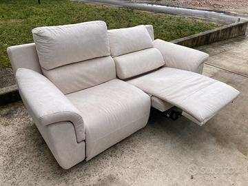 Vendo causa trasloco divano 2 posti con elemento relax elettrici a dx come foto. Rivestimento in microfibra. Usato pochissimo, nessun segno di usura, sfoderabile, pulito, funzionale. Misure: L 213 P100 H98 cm.