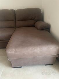 Divano in Alcantara color tortora con sceslong e possibilità di trasformarlo in divano letto. Il divano ha un anno di vita ed è come nuovo.