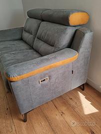 Bellissimo divano con seduta regolabile e prese di ricarica usb. Rivestimento bi colore in microfibra grigio/ocra. Pari al nuovo vendo per cambio progetto di arredamento