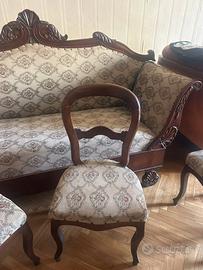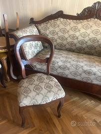 Vendesi divano antico, con sei sedie. Buono stato di usura.